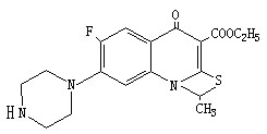 化學(xué)名:6-氟-1-甲基-4-氧代-7-(1-哌嗪基)-4H-[1-3]噻嗪[3,2a]并喹啉-3-羧酸 6-fluoro-1-methyl-4-oxo-7-(1-piperazinyl)-4H-[1,3]thiazeto[3,2-a]-3-quinoline carboxylic acid |